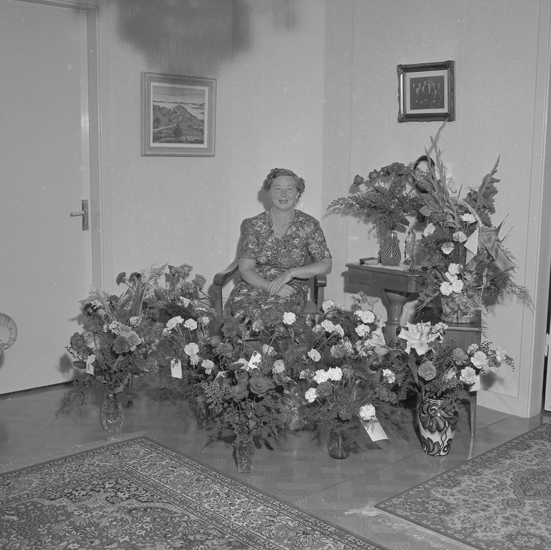 Text till bilden: "Blenda Forsberg, Korsgatan 8. 50 år. 1955.08.06"