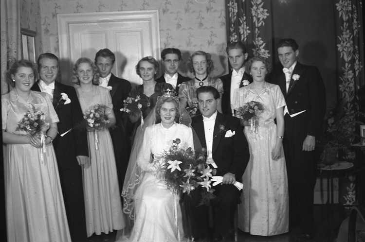 Text till bilden: "Brudparet Rolf Gunnarsson, Fiskebäckskil. 1949.12.03"