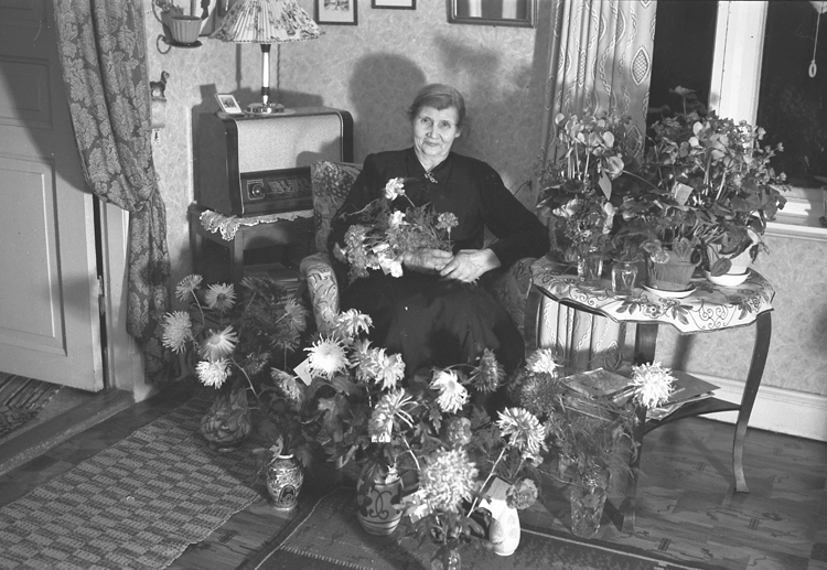 Text till bilden: "Hilma Karlsson, Stengatan 11. 75 år. 1949.12.06"