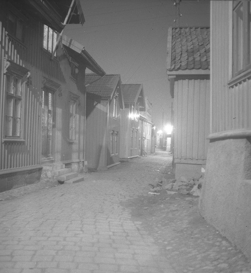 Titel: Text till bilden: "Lysekil. Norra Hamnen. Kvällsbilder 1939.10.26".
