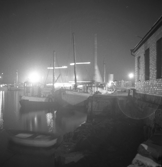 Text till bilden: "Lysekil. Norra Hamnen. Kvällsbilder 1939.10.26".