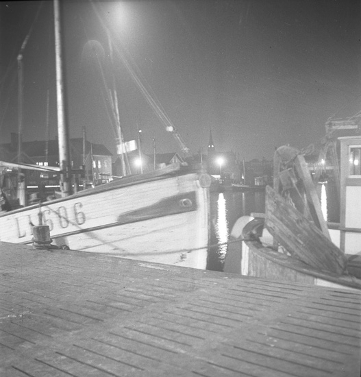 Text till bilden: "Lysekil. Norra Hamnen. Kvällsbilder 1939.10.26".