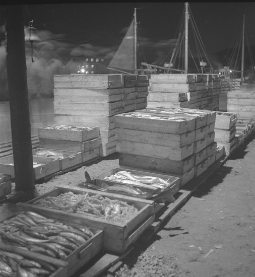 Text till bilden: "Lysekil. Norra Hamnen. Kvällsbilder 1939.10.26".