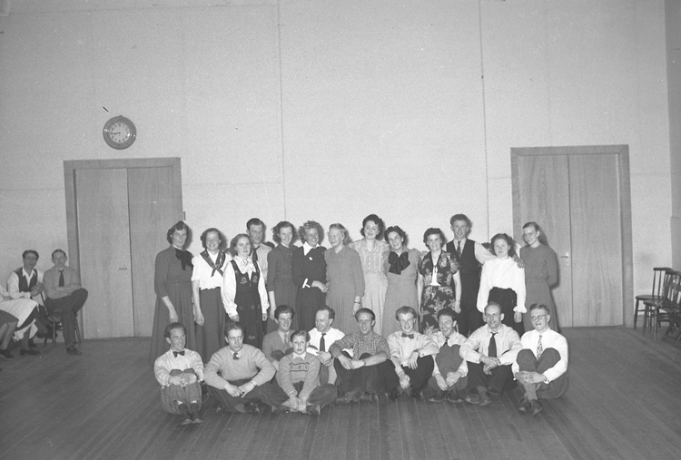 Text till bilden: "Danskurs. Folkdansgillet. 1949.03.29"