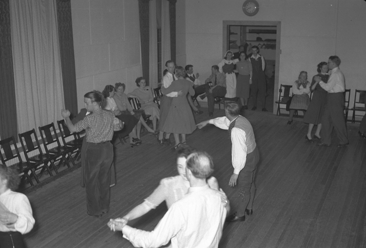 Text till bilden: "Danskurs. Folkdansgillet. 1949.03.29"