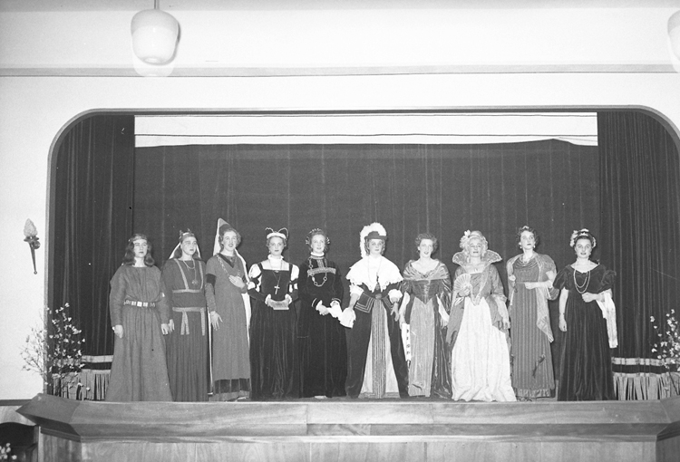 Text till bilden: "Lottasoaré. Folkets Hus. (b-sal). Drottningparad.1949.04.05"