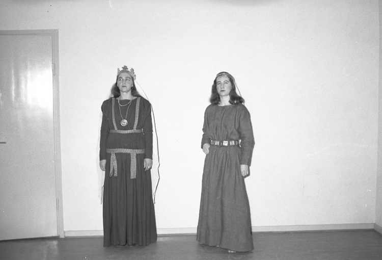 Titel: Text till bilden: "Lottasoaré. Folkets Hus. (b-sal). Drottningparad.1949.04.05" i