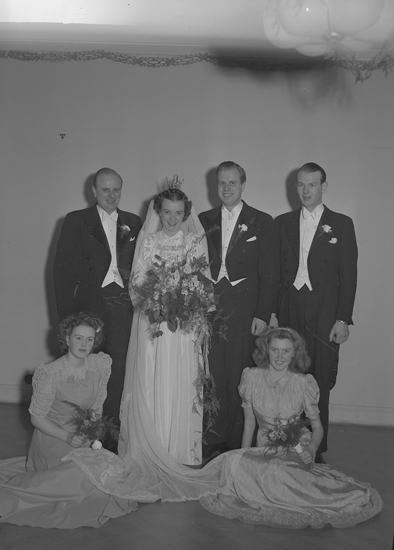 Titel: Text till bilden: "Bröllopsfest. Tärnan 4/1 47. Best. Frank Rosen. 1947.01.04".