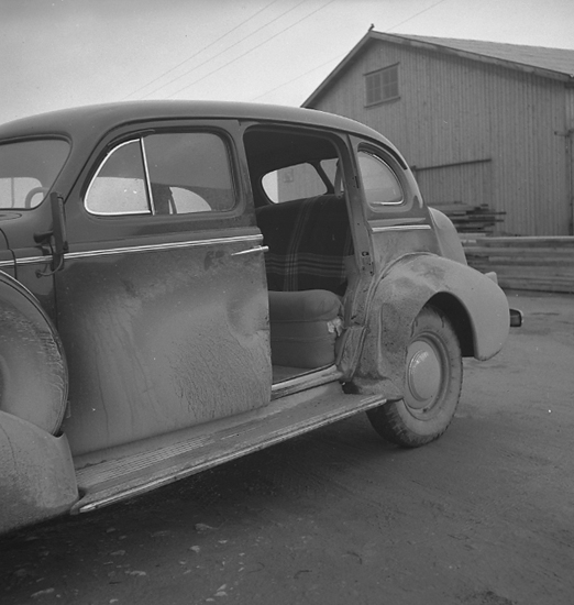 Text till bilden: "Plåtmanufaktur. Personbil. Polisbild. 1947.04.25".