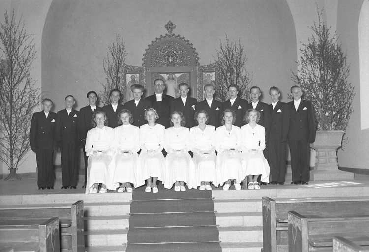 Text till bilden: "Konfirmander i Lyse Kyrka. 1949.05.07"