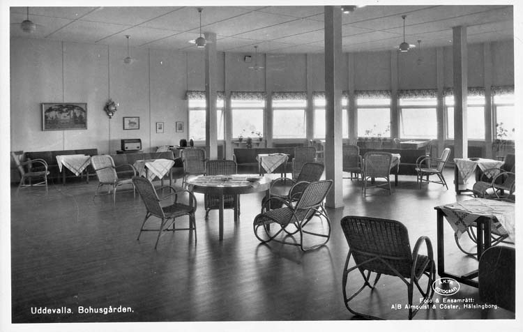 Text på kortet: "Uddevalla. Bohusgården. Foto & Ensamrätt A/B Almqvist & Cöster Hälsingborg".