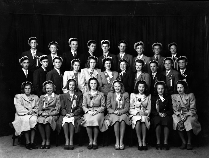 Uppgift enligt fotografen: "Uddevalla. Gruppfoto. Praktiska Mellanskolan."