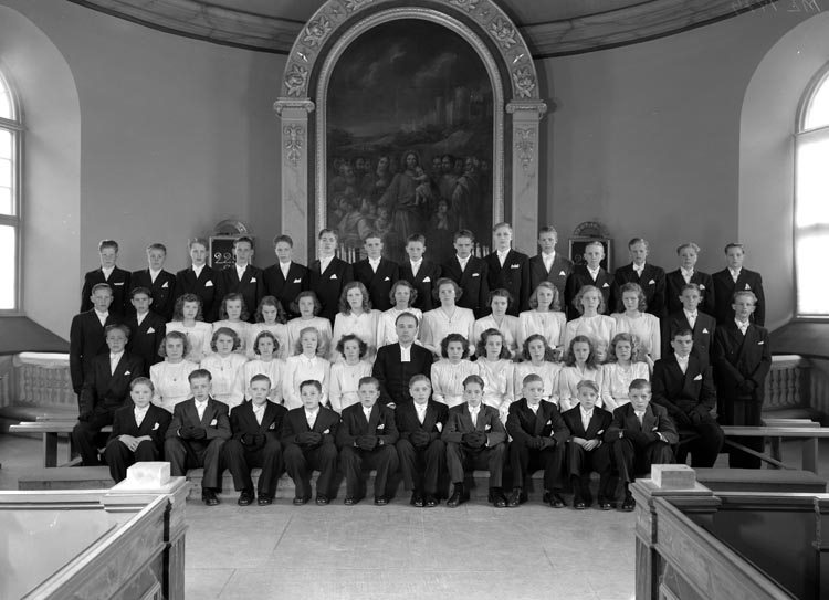 Uppgift enligt fotografen: "Konfirmander. Pastor Långström."