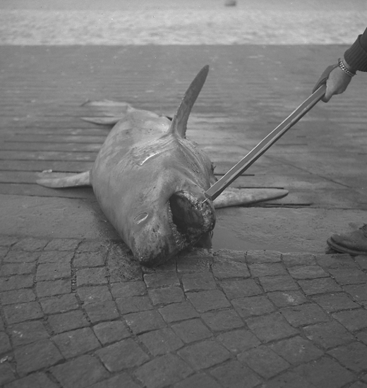 Titel: Text till bilden: "Håbrandshaj i Norra Hamnen. 1946.10.25".