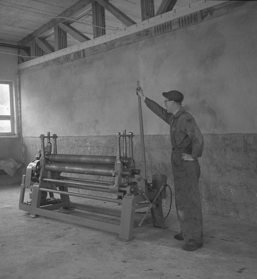 Text till bilden: "Plåtvalsmaskin. Hellden & Co. Mek. verkstad. 1947.03.27".