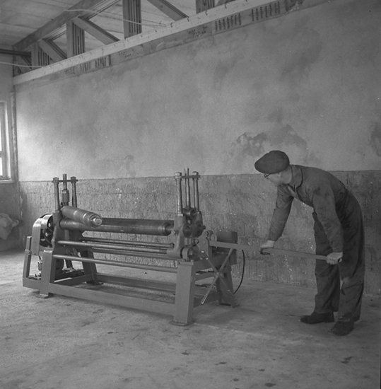 Text till bilden: "Plåtvalsmaskin. Hellden & Co. Mek. verkstad. 1947.03.27".