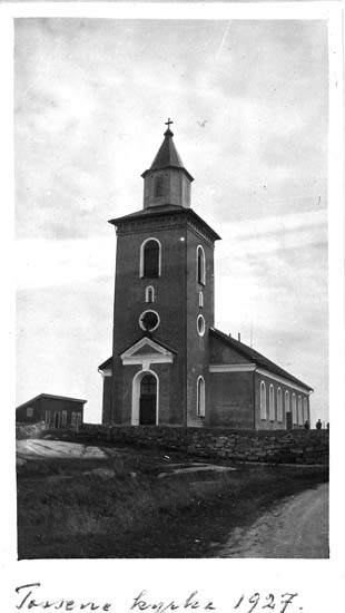Text på kortet: "Tossene kyrka 1927".