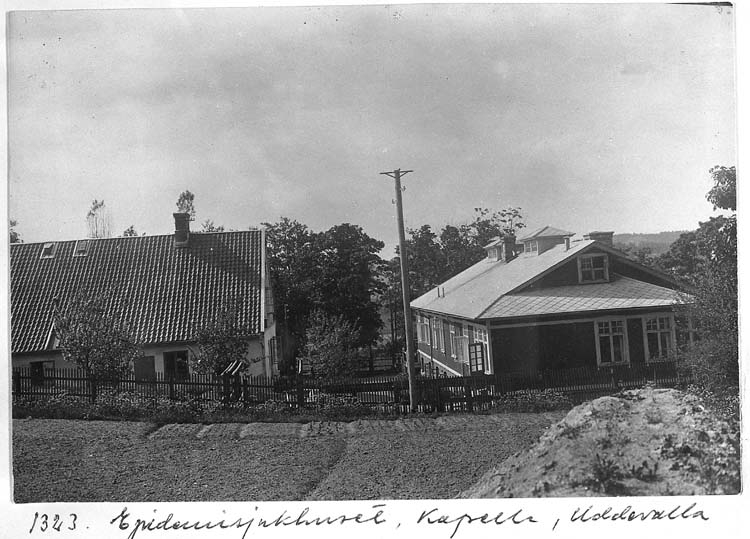 Text på kortet: "1343. Epidemisjukhuset, Kapelle, Uddevalla".