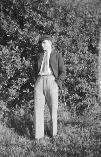 Noteringar gjorda på negativets pappersficka: "Grå flanellbyxor".