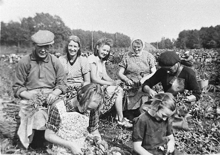Bildtext till kopian i fotoalbumet: "Skörd av ärtor i Stuveröd 1942