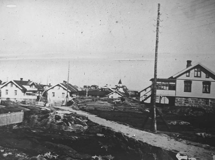 "Käringön. Käringöns fiskeläger ligger nordverst om Mollösund. Här är en bild tagen över Käringön med kyrkan i bakgrunden."