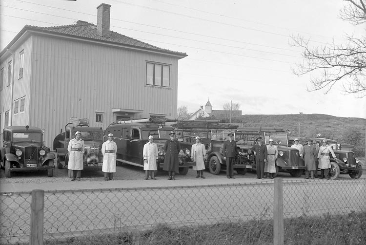 Enligt fotografens journal nr 7 1944-1950: "Brandstationen Stenungsund Brandkårsmöte".