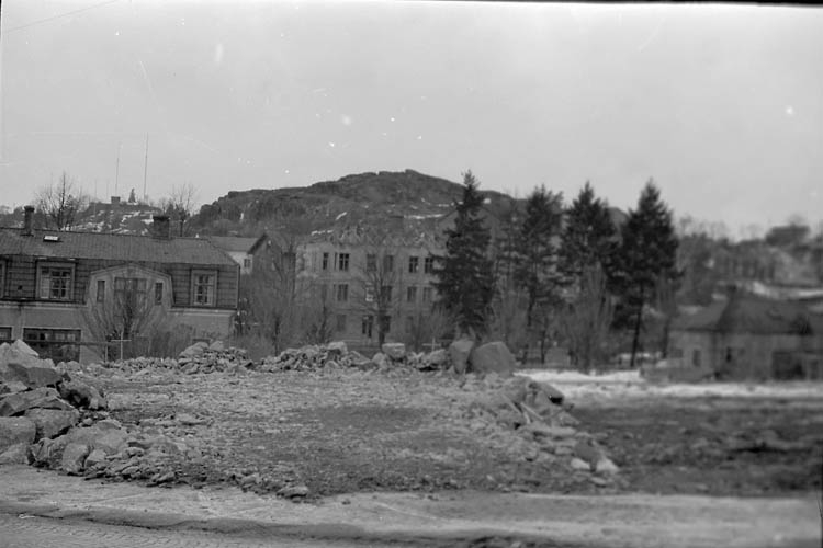 Text till bilden: "Här rivs1965 för att ge plats åt Östraboskolan". Album 1 bild 73.