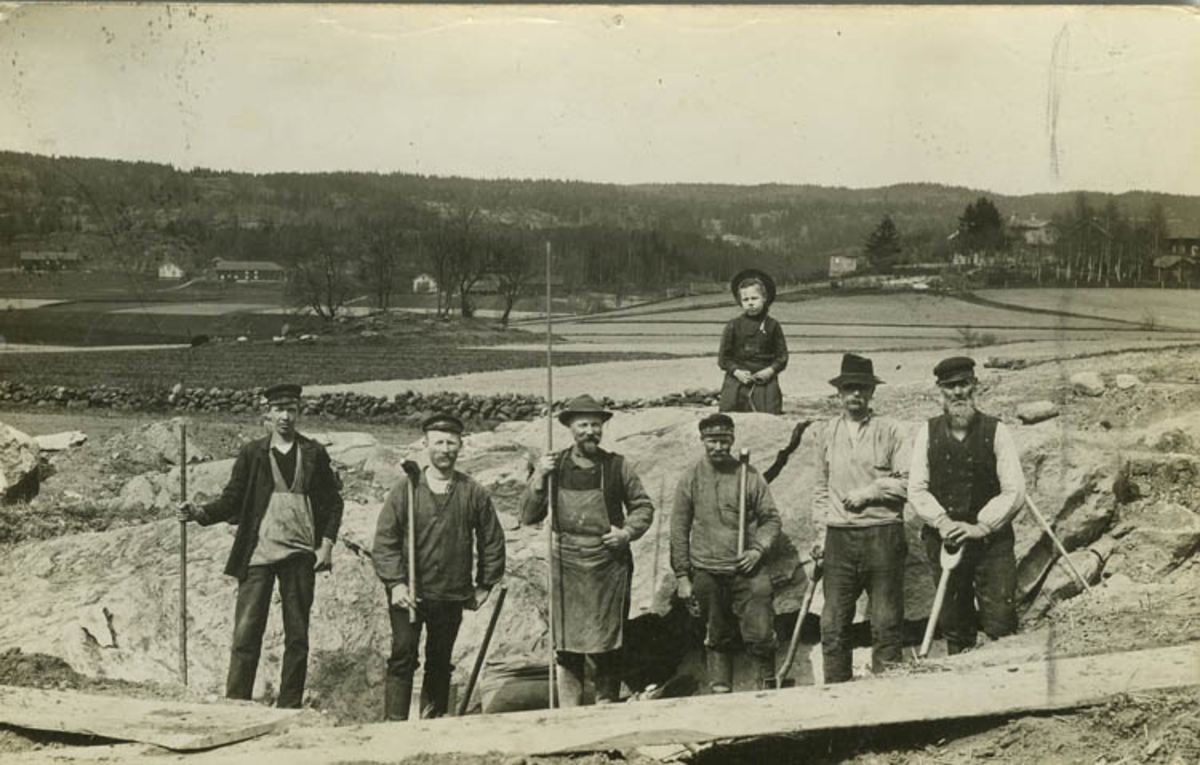 Text på kortet: "Arbetslag vid grundläggningen av Västerlandas Ålderdomshem".
