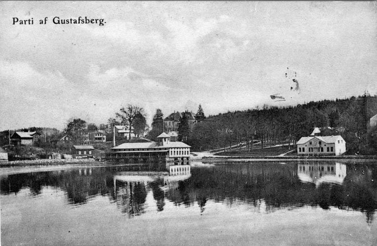 Tryckt text på vykortets framsida: "Parti af Gustafsberg."