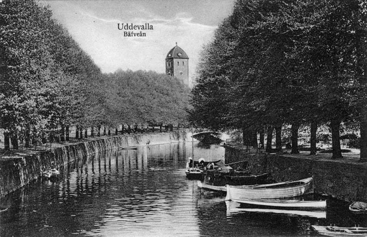 Tryckt text på vykortets framsida: "Uddevalla Bäfveån."