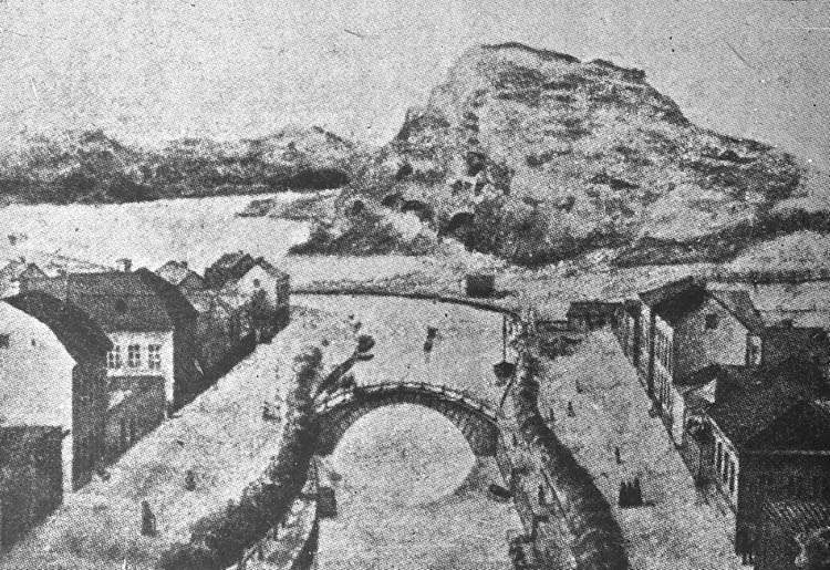 Norra och Södra Hamngatan med Bäveån i mitten i Uddevalla.