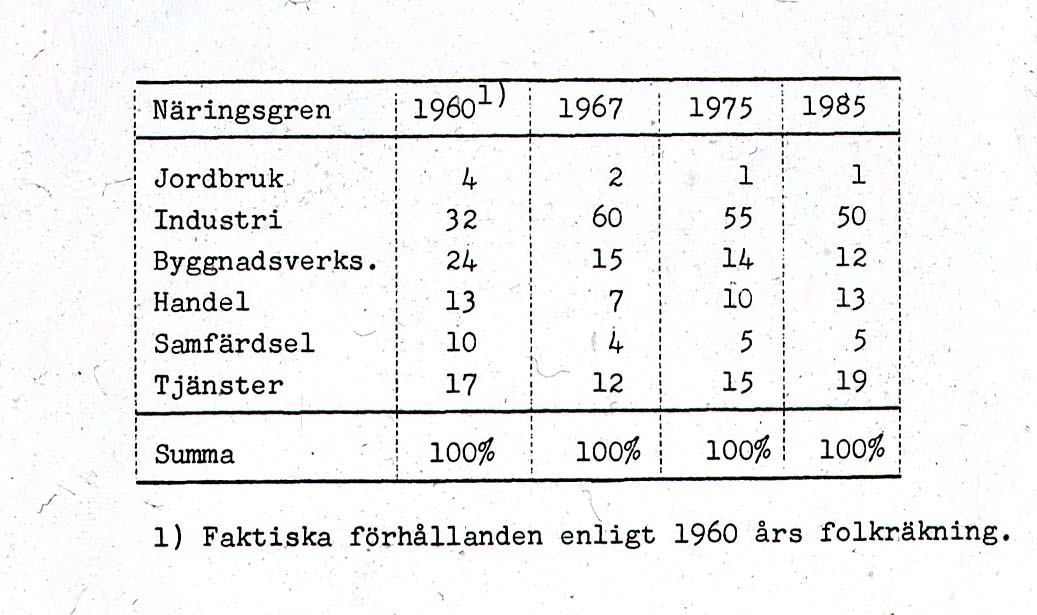 Tabell, näringsgrenar 1960, 1967, 1975 och 1985.