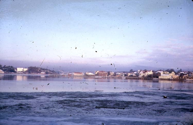 Titel: Stenungsunds gamla centrum 1961-1962 från Stenungsön. Strandlinjen (Sundet).