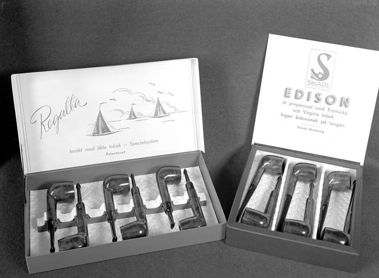 Två lådor med pipor, Regatta och Edison, Skapi, Uddevalla