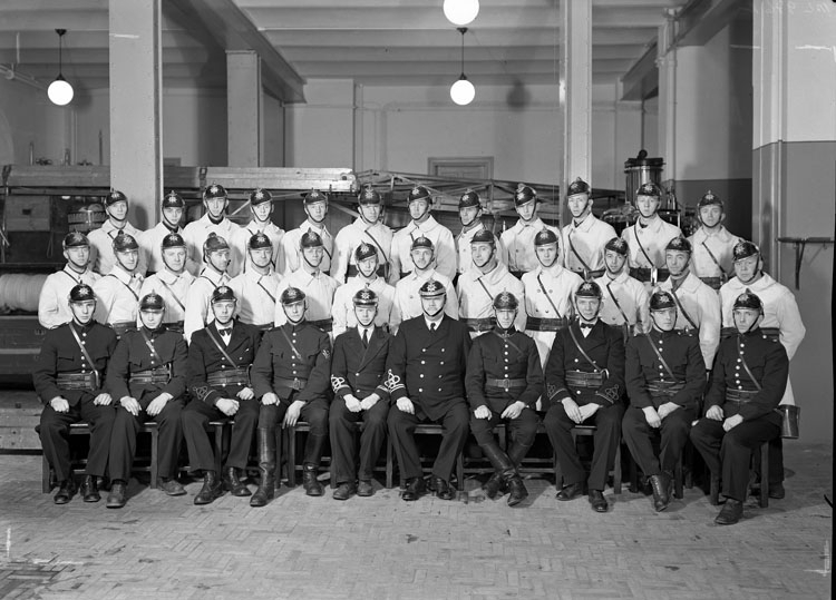 Uppgift enligt fotografen: "Uddevalla. Gruppfoto. Brandkåren U-a."