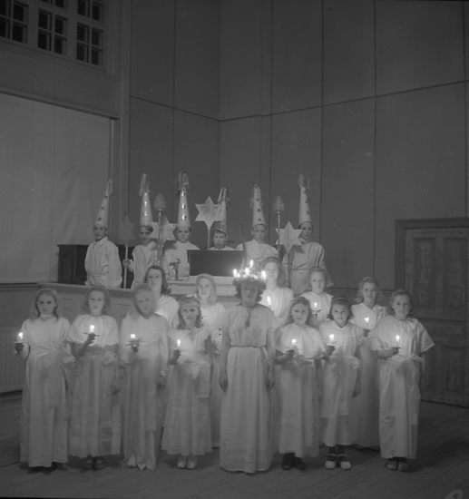 Text till bilden: "Emanuelskyrkan. Missionsförening. Luciafest. 1945.12.11".