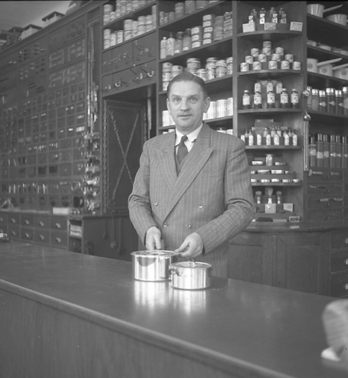 Text till bilden: "Styrelseledamöter. Lysekils Köpmansf. för köpmännen. 1946.04.25".