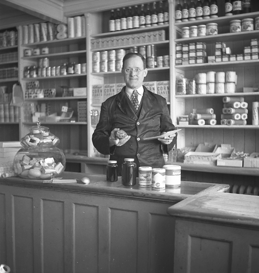 Text till bilden: "Styrelseledamöter. Lysekils Köpmansf. för köpmännen. 1946.04.25".