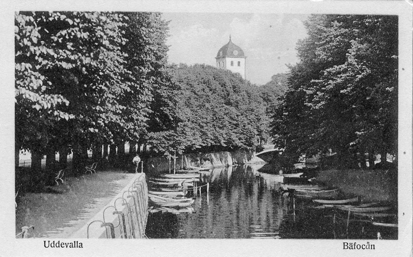 Tryckt text på vykortets framsida: "Uddevalla Bäfveån".