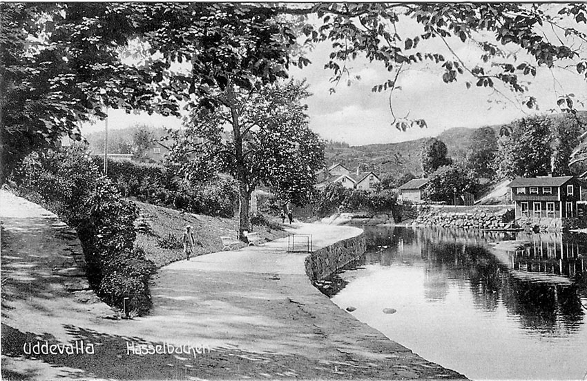 Tryckt text på vykortets framsida: "Uddevalla.Hasselbacken".