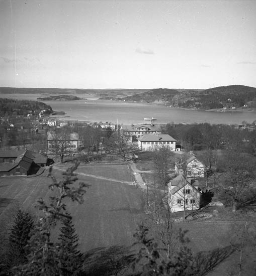 Text till bilden:"Utsikt över Ljungskile fjorden och V. U. Skolan".