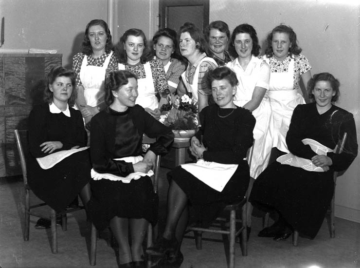 Text till bilden:"Gruppbild. Elva damer. V. U. Skolan".