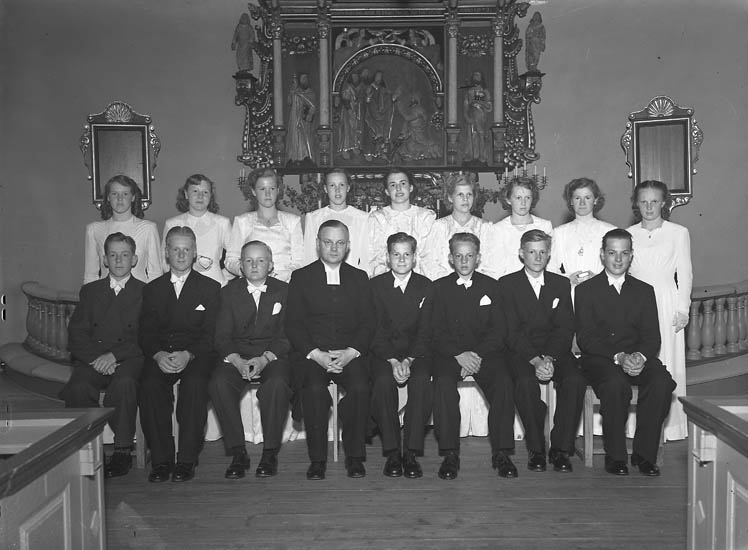 Text till bilden:"Konfirmander från Grinneröd 8/10 1950".