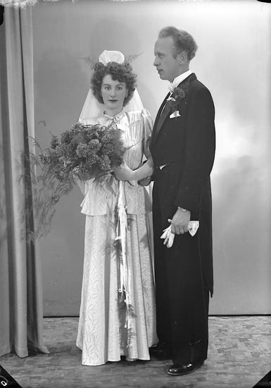 Enligt fotografens journal nr 7 1944-1950: "Arvidsson, Brudpar Här".