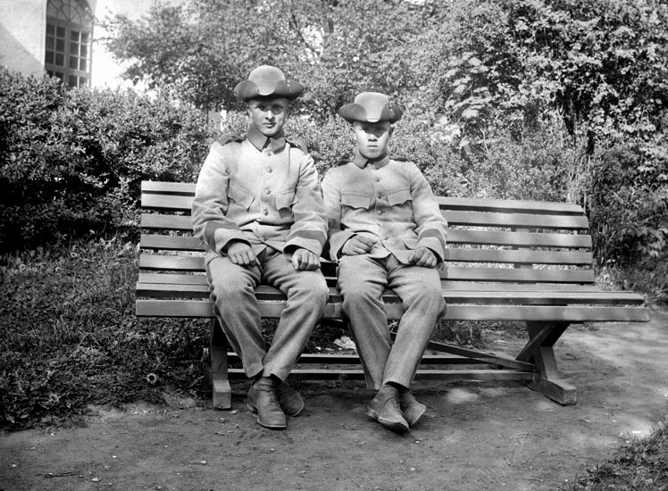 Enligt senare noteringar: " Magnus Johansson, Karl Nilsson. Taget vid plantaget vid kyrkan. 26/5 1915."