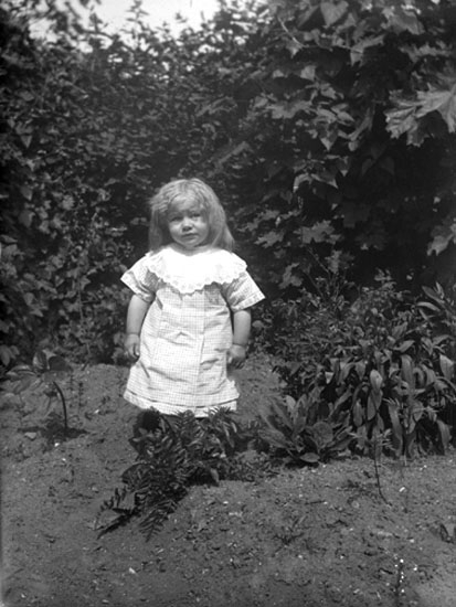 Enligt senare noteringar: " Astrid Andersson. Taget i Zachrissons trädgård, Lilla Nygatan. 16/6 1915."