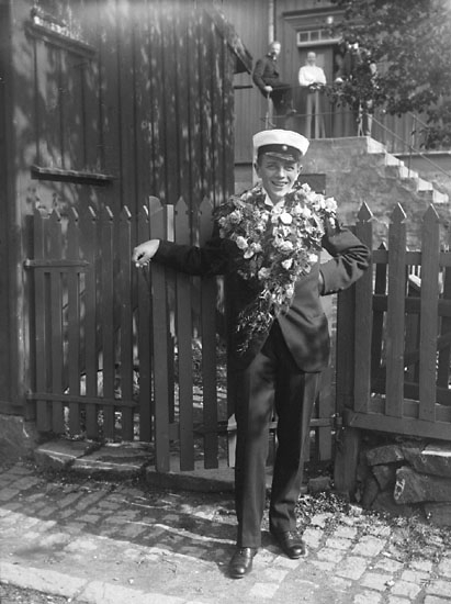 Enligt senare noteringar: "Ego efter studentexamen. Taget utanför porten. 6/6 1916."