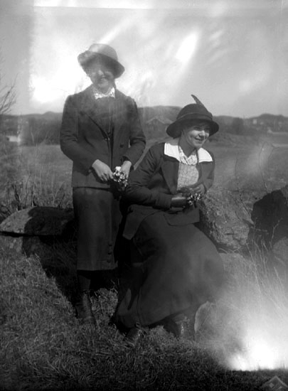 Enligt senare noteringar: "Ester Helgesson, Ingrid Olsson. Taget mitt emot Folkets park (utan cykel), 19/4 1914."