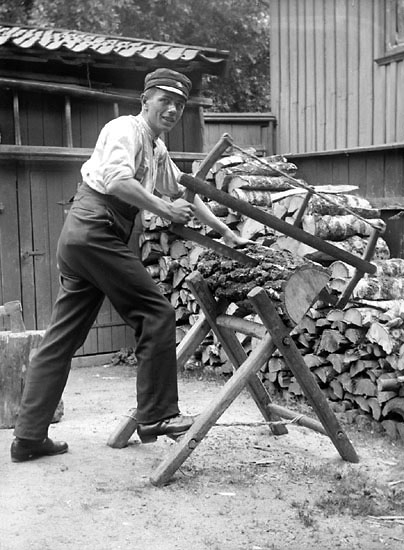 Enligt senare noteringar: "Kurt Jansson (sågande ved), taget i vår gård, 18/7 1914."