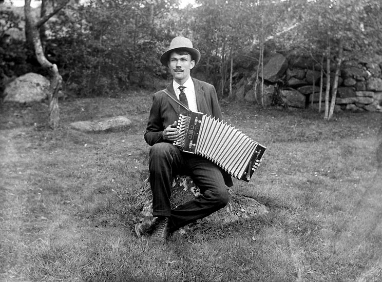 Enligt senare noteringar: "Ernst Andersson, Stenshult. Taget utanför stugan, sittande,